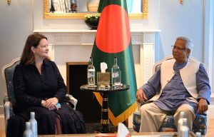 Lesley Craig, Head of the South Asia Regional Department, FCDO, UK, accompanied by Commodore Whalley, met Chief Adviser Professor Muhammad Yunus here today (Friday) to